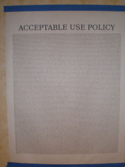 Flickr: madmanOTLAcceptable Use Policies developed as a result of legislation that attempted to govern how schools allowed students to use the Internet. While legislation usually did not directly call for their formation, it was sort of the implementation of choice for most schools around the country. The policy is basically a signed agreement documenting what's acceptable in using the Internet at school (although as Karl Fisch stated, it is really an unacceptable use policy as most of them are just a list of things that kids cannot do). Parents and students had to sign the AUP before they were granted any Internet privileges at school. In that way, it was sort of like a contract between the school and the student's family.