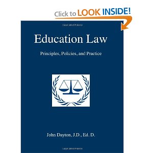 But, recently I was made aware of a new textbook on education law that takes a different approach to publishing, namely, no publisher. John Dayton's new book, Education Law: Principles, Policy & Practice, has taken a self-publishing approach. It is a very comprehensive (480 pages) look at education law. It is also not a casebook, meaning John actually wrote all of the text. There is also a Kindle version coming soon. I have just briefly scanned the book and find it to be very well constructed and particularly strong on constitutional issues. It was clearly a labor of love and I recommend you at least give it a look on Amazon. To those folks teaching law out there, I'm sure if you contacted John he could get you part of the book to review even.